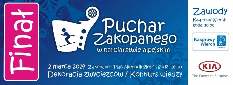 Już w najbliższą niedzielę 2 marca zapraszamy na Kasprowy Wierch, gdzie odbędzie się finał Pucharu Zakopanego w narciarstwie alpejskim. Nie może Was zabraknąć.  Puchar Zakopanego to cykl czterech imprez, które odbyły się jak dotąd 14 grudnia na Polanie Szymoszkowej, 9 lutego na Nosalu oraz 16 lutego na Harendzie.